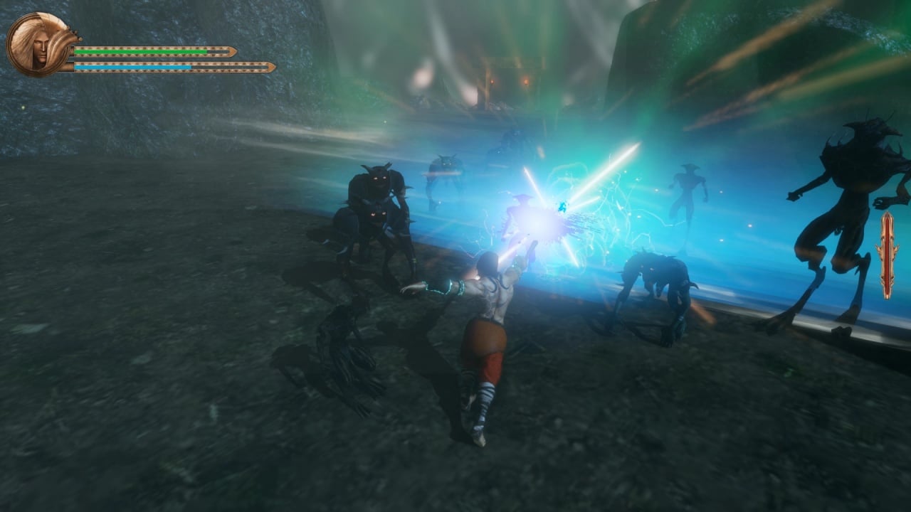 Отменять движения в этой игре нельзя. При замахивании придется досмотреть анимацию удара до конца, а уже потом совершать следующее действие. Делать выпады оружием и одновременно перемещаться по полю боя не разрешают. Когда персонаж атакует, то всегда стоит на месте. В бюджетном проекте у боевки встречаются проблемы. Иногда возникают баги с хитбоксами, из-за чего воин или получает повреждения, просто находясь рядом с чудовищами, или не может нанести врагам урон. Новые приемы боец открывает постепенно, но этот процесс проходит очень медленно. Локации в инди-проекте коридорные и линейные.