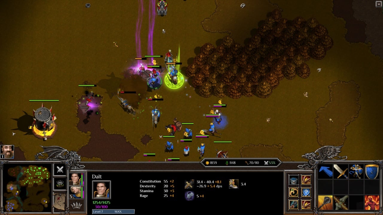 В этом продукте есть некоторые современные решения, которых был лишен первоисточник. Здесь можно обводить рамкой более 9 солдат, выстраивать очереди производства при штамповке юнитов, включать у колдунов автоматическое применение магии и т. п. Игровой процесс классический: отправляем крестьян добывать золото и рубить лес, строим бараки для создания армии и постройки, позволяющие провести исследования за ресурсы и слегка усилить войско. Затем при накоплении достаточной мощи отправляем своих подопечных уничтожать вражескую базу.