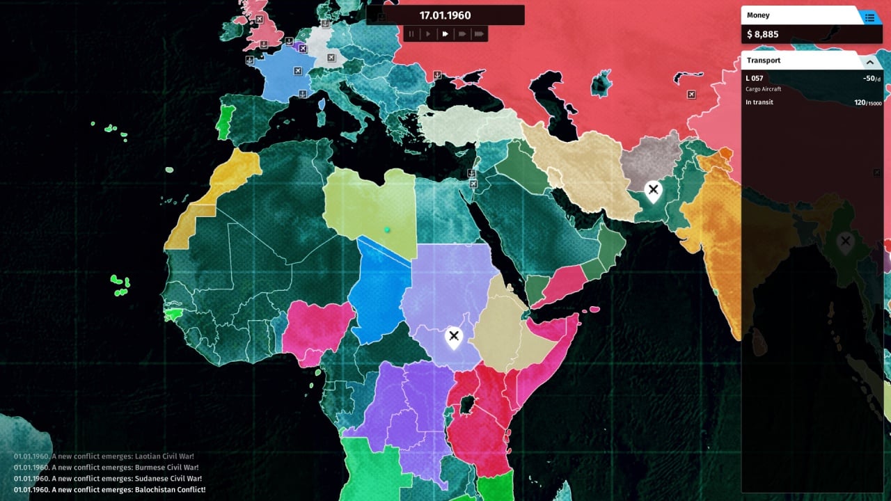 Пользователь сам решает, что и кому продавать, и в каком количестве. При этом сделка может сорваться. Если это произойдет, то юзер потеряет и товар, и деньги. Игра всегда показывает процентные шансы успеха и неудачи. В инди-проекте около 50 вооруженных конфликтов. Присутствует возможность оказывать влияние на исторические события. Оружейный барон может поддерживать конкретную воющую силу или тайно снабжать пушками всех участников. Однако заниматься этим долго и безнаказанно не получится, потому что "торговца смертью" пытаются выследить спецслужбы. Агентов можно подкупать. Ещё заработанные финансы тратятся на покупку дополнительного летающего и плавающего грузового транспорта.