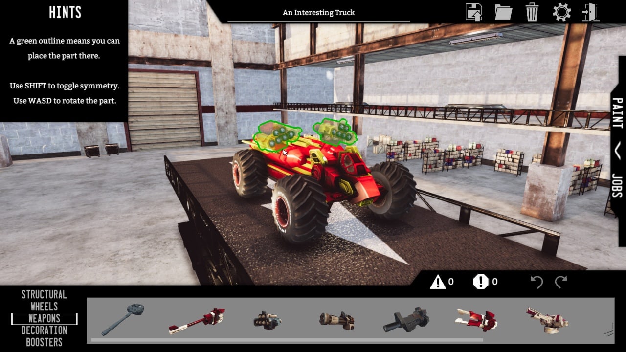 Игра обладает встроенным редактором карт, что позволяет всем, кто пожелает попробовать собственные силы не только в сборе автомобиля, но и в проектировании интересного и сложного участка карты, который необходимо преодолеть от точки старта до финиша. Доступно к установке: рампы для мёртвых петлей, ракетницы, выстреливающие в геймера для создания преграды на пути, стены, рампы для умопомрачительных прыжков, отбойники, дороги, горные массивы и множество других вещей. Всё это выполнено с использованием трёхмерных текстур высокого разрешения для создания качественной картинки.