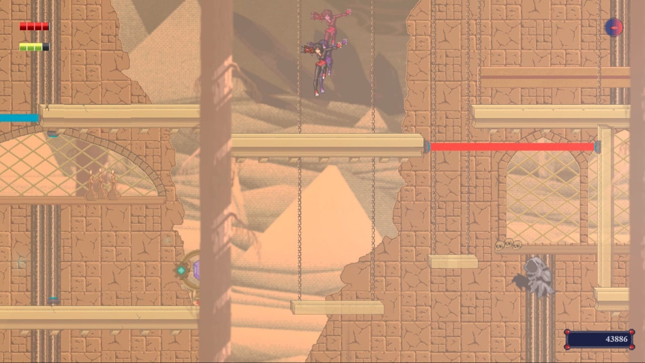 Управление на геймпаде и на клавиатуре тут неотзывчивое. Это вместе с требовательностью игры к высокой точности может привести к частым смертям на локациях. Однако в случае гибели персонаж возрождается в той же самой комнате, а не в начале карты. При переходе на следующий экран восстанавливается всё здоровье. В ходе своего путешествия героиня собирают валюту. Она тратится на прокачку молодой женщины, улучшение оружия ближнего и дальнего боя, покупку отдающих хентаем рисунков.