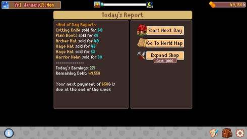 Доступны различные классы, различное оружие, множество предметов декора магазина и многое другое. Играйте на одном из двух уровней сложности. Помимо сюжетной кампании доступен режим песочницы. Просто наслаждайтесь развитием магазинчика и не думайте о финансах и врагах. Игровой процесс Pixel Shopkeeper сочетает стратегию с элементами головоломки.