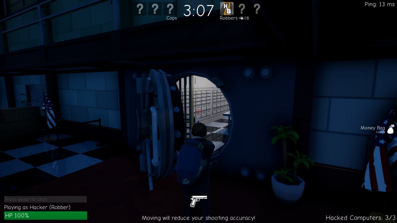 Перед стартом партии происходит голосование за локацию, которых в игре насчитывается три штуки. После завершения одной сессии, стартует следующий матч. Между поединками происходит настройка виртуальных протеже, экипировка девайсами, вооружением, кастомизация внешнего вида. Для грабителей доступна возможность выбора маски для сокрытия лица, добавляющая определённые параметры.