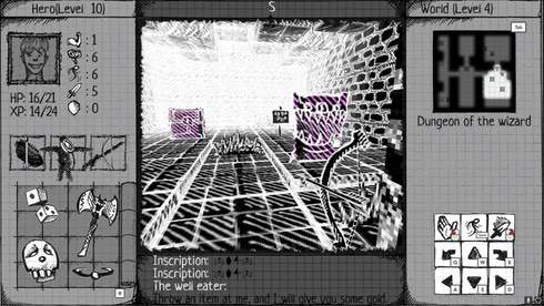 Drawngeon: Dungeons of Ink and Paper – ролевое приключение с видом от первого лица, в мире созданном в псевдотрёхмерном пространстве с двухмерными спрайтами, и с использованием графики, нарисованной от руки в двух цветах – белом и чёрном. Во многом, этот проект за авторством небольшой инди-компании, напоминает старомодные игры прошлого века, с тех времён, когда этот жанр только начинал зарождаться в игровой индустрии. На протяжении всей короткой однопользовательской кампании (единственный режим, доступный для изучения), геймер получает громадное число наград из списка достижений за определённые успехи в продвижении к финальным титрам.