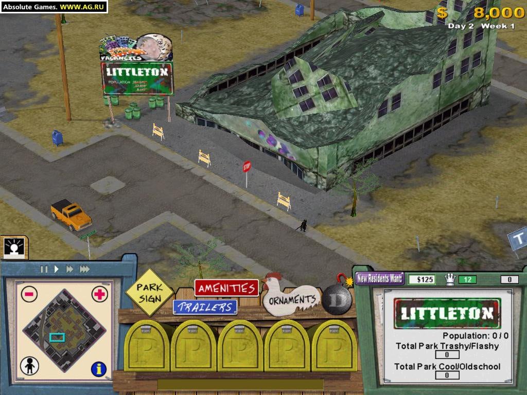Trailer Park Tycoon RUS Полная версия Последняя Дата выхода 2002 Разработчик Jaleco Entertainment Жанр Стратегии Обновлено 26 января 2025, 03:40 Список изменений Trailer Park Tycoon предоставляет возможность игроку стать настоящим директором парка домиков на колесах. Юзеру предстоит выстраивать разные трейлеры и конструкции для того, чтобы привлечь максимальное количество гостей в импровизированный городок. Сначала в парке находится 5-8 основных трейлеров, которые есть возможность три раза обновлять, но дальше по ходу игрового процесса начинают появляться разные специализированные вагончики для обслуживания людей по специфическим потребностям. Игра отличается достаточно проработанным геймплеем и наличием большого количества юмористических фишек. Также в Trailer Park Tycoon имеется неповторимая когорта персонажей, простые и полезные настройки, веселые места общественного пользования и очень юморные домики на колесах, которые отлично поднимают настроение. Чтобы герой стал настоящим трейлерным магнатом, нужно постоянно заботиться о прекрасном самочувствии и настроении жителей, а также руководить их жизнью и отношениями. Пользователь может настраивать место расположения своего недвижимого парка на колесах. Для выбора даны следующие локации: топкое болото, ветреная пустыня, большая страна и современный город. Также для игрока есть возможность строить крепкие решетки, открывать салон видеопроката, заводить фламинго розового цвета, выпускать на волю стаю собак, строить башни из пустых пивных баночек, а также постоянно контролировать денежные потоки главного протагониста. Скачать торрент Скриншоты Показать больше Видео из игры Скачать Trailer Park Tycoon Тип релиза RePack от MassTorr Версия (Полная) Последняя Размер 163.70 МБ Интерфейс Русский Озвучка Отсутствует Установка: Скачать .torrent торрент файл Скачать БЕЗ торрента прямая ссылка через uTorria Системные требования ОС: 7, 8, 10 Процессор: 450 Mhz Оперативная память: 128 Mb Видеокарта: 64 Mb Место на диске: 400 МБ Менеджмент