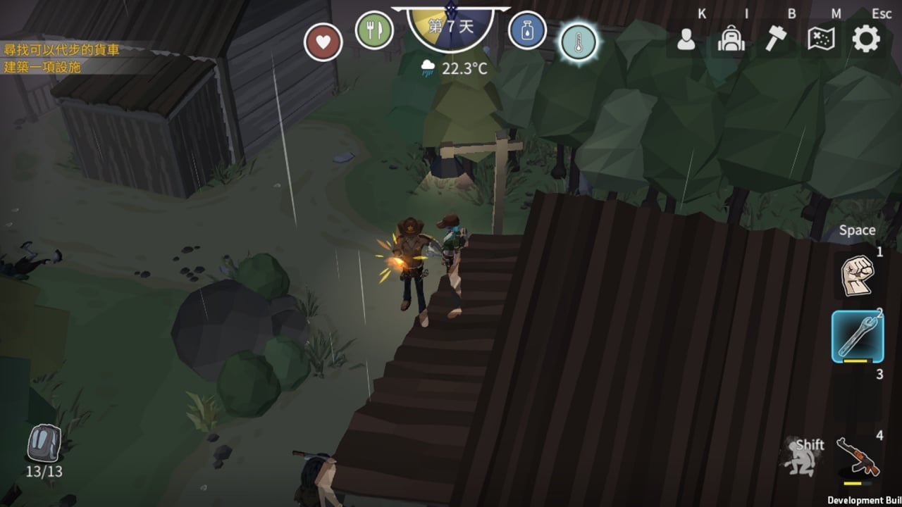 Зомби особенно активны с заходом солнца. Ночь - самое опасное время в Jungle Z. Собирайте ресурсы, чтобы успеть построить оборонительную базу до наступления темноты. Можно играть как в одиночку, так и выживать вместе с друзьями. Объединяйте усилия, чтобы эффективнее противостоять нашествию монстров. Однако помните, что в мире мертвых наибольшую опасность представляют живые. Доверяйте ли вы своим друзьям? Карты генерируются случайным образом, также как и расположение предметов, врагов, случайных событий и многое другое.