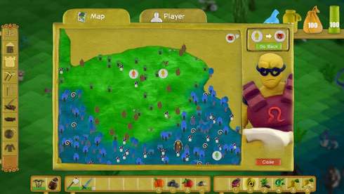 Местные просторы генерируются случайным образом. Каждая дверь является порталом в другое измерение (данж), в котором стоят сундуки с лутом. Периодически свой лагерь необходимо защищать от набегов чудовищ. Если этого не делать, то враги уничтожат посевы. Из оружия тут есть попкорновая пушка, глаз-гранаты, пчелиный меч, помидорные бомбы и другие вещи с забавными названиями. Также здесь важно не забывать кормить протагониста.