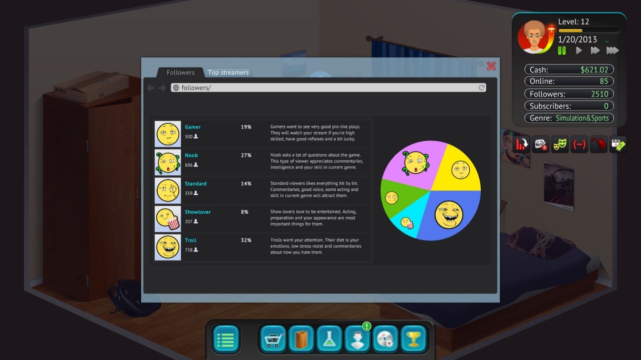 Streamer's Life RUS v 1.091 Новая версия Полная версия Последняя Дата выхода 31 июл. 2019 Разработчик Just Making Games Жанр Симуляторы, Инди, RPG, Выживание В основном положительные на основе 140 обзоров в Steam 74% Обновлено 26 января 2025, 05:55 Список изменений Streamer's Life - игра, в которой геймеру предстоит попробовать себя в роли стримера. Кому-то может показаться, что жизнь такой персоны проста и понятна, но оказывается это не так. В процессе прохождения, как и в жизни, будущему стримеру предстоит не только развивать собственные способности, но и завоевывать признание подписчиков, зарабатывая деньги. На пути игрока ждать много испытаний, полных как взлетов, так и падений, а получится ли выбиться в ТОП зависит только от самого героя и его стараний в симуляторе. В самом начале Streamer's Life геймеру предстоит создать собственного персонажа и начать творческий путь. Выбирать можно все что угодно, начиная от внешности и заканчивая одеждой. В процессе героя запросто могут обидеть тролли и начать создавать неприятности, но его задача выстоять против них и умело парировать удар. Также постоянно придется продумывать контент, чтобы он получил отклик аудитории. Осуществляемые действия и принятые решения будут влиять на последствия, а на карьеру влияют различные факторы. Например, влияние родителей, которые против того, чтобы ребенок сидел в интернете может заставить реже выпускать контент или вовсе изменить направленность действий. В процессе прохождения будут происходить забавные ситуации, в которых будет оказываться главный герой. Главное, правильно подать контент публике, чтобы получить успех. Скачать торрент Скриншоты Видео из игры Скачать Streamer's Life Тип релиза Пиратка (Таблетка: Не Требуется) Версия v 1.091 (Полная) Последняя Размер 71.48 МБ Интерфейс Русский Озвучка Отсутствует Скачать .torrent торрент файл Скачать БЕЗ торрента прямая ссылка через uTorria Системные требования ОС: 7, 8, 10 (64-bit) Процессор: Dual Core (2 ГГц) Оперативная память: 2 ГБ Видеокарта: Hardware Accelerated Graphics Место на диске: 100 МБ Мемы, Реализм