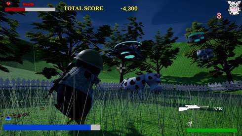 Передвигайтесь по ярким открытым локациям, отличающиеся интерактивностью. Геймплей заставляет все время находиться в движении, сражаясь с многочисленными противниками. Пришельцы могут возникнуть в любой точке карты, поэтому необходимо успеть добраться до противника, пока они не похитили всех коров. Как только с локации исчезнет последнее животное - вы проиграли. Защитите свою маленькую ферму и взорвите все инопланетные корабли!Особенности игрового процесса Lucky VS Aliens: