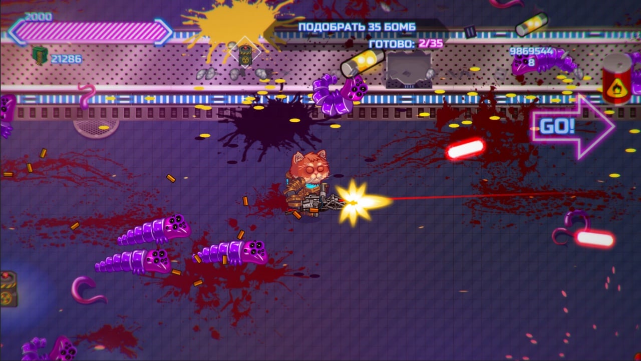 ARMORED KITTEN – сайд-скроллер с ярким графическим оформлением и масштабными спецэффектами, занимающими большую часть экрана. Геймеру доступно перемещение по трём измерениям. Игра наполнена сценами насилия, жестокости и убийствами с громадным количеством крови. Это контрастирует с внешностью главного героя Прапорщика Котэйко – милого котика, облачённого в мощную броню, помогающую смягчать урон от вражеских попаданий. Протагониста можно кастомизировать, а также, реализована возможность прокачивать его способности и запас здоровья. Также, апгрейду подлежат и пушки, используемые котом.