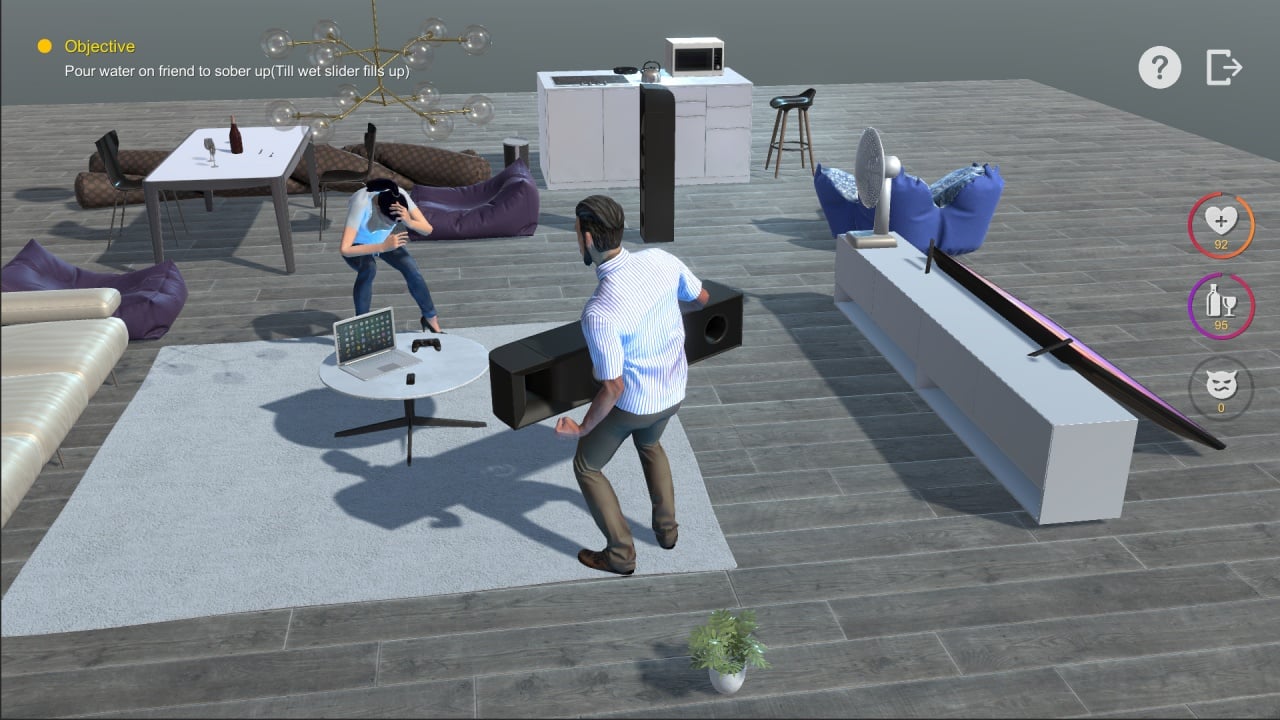 You have a drunk friend v 1.2 Новая версия Полная версия Последняя Дата выхода 9 ноя. 2018 Разработчик PhyzixMind Жанр Экшены, Инди, Симуляторы, Приключения Смешанные на основе 227 обзоров в Steam 63% Обновлено 26 января 2025, 06:10 Список изменений В You have a drunk friend предстоит помочь другу, который находится в алкогольном опьянении и несет полную ахинею. Своими действиями приятель может создавать опасные ситуации, что не есть хорошо в праздник. Необходимо утихомирить пьяницу, спасая обстановку. Главная задача – уложить пьяного человека спать. Предстоит наблюдать за пьяным персонажем, который ходит по комнате. Требуется убирать предметы, перенося их в стороны, чтобы товарищ не спотыкнулся и не упал. Каждое падение пьяницы будет снимать часть жизней. Стоит все делать быстро и аккуратно, пока оппонент ничего с собой не сделал. На локациях в You have a drunk friend будет предложен большой выбор главных героев, за которых можно сыграть. Они же будут нашими друзьями. Постепенно придется разблокировать новых ребят. Это будет Дин в белой рубашке и бородой, мускулистый Гарри, который работает вышибалой, смазливый Элвин, пышногрудая Дэйзи и Элина в откровенном платье. Геймплей основывается на управлении протагонистом, которому нужно перемещаться по локации и отставлять предметы, чтобы те не стали угрозой для товарища. Понадобится приседать, беря горшки с растениями, подарки, подушки и другое. Также можно брать колонки руками. Каждая конечность контролируется отдельным образом. Постепенно будут открываться новые локации, в которых находятся следующие предметы: телевизоры, кровати, диваны, столы, тумбочки и другие объекты. Скачать торрент Скриншоты Показать больше Видео из игры Скачать You have a drunk friend Тип релиза Лицензия (Таблетка: Присутствует) Версия v 1.2 (Полная) Последняя Размер 306 МБ Интерфейс Английский Озвучка Отсутствует Скачать .torrent торрент файл Скачать БЕЗ торрента прямая ссылка через uTorria Системные требования ОС: XP, Vista, 7, 8, 10 Процессор: Intel Core2 Duo Оперативная память: 1 ГБ Видеокарта: GT 740 Место на диске: 800 МБ Казуальная, Смешная