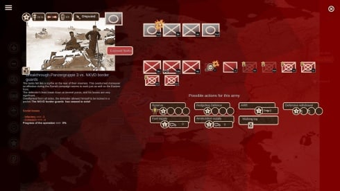 Все события происходят на глобальной карте. Периодически будут возникать различные события, в которых геймеру предложат совершить выбор. Принятые решения (иногда – жесткие) будут приводить к разным последствиям. Есть даже военные преступления. Продукт может похвастаться реиграбельностью. Для сражений на Восточном фронте доступно несколько сценариев. У игры высокий порог вхождения. В неё встроена собственная вики с описанием главных механик.