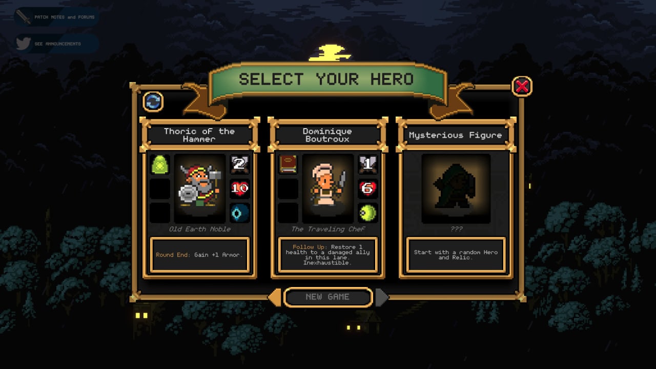 Поля боя состоит из 18 клеток – по 9 для каждой из сторон. Имеются 3 ячейки для героев (они могут перемещаться вверх и вниз или стоять в центре) и 6 для их защитников. Изначально отряд состоит из 4 существ, но по мере прохождения он расширится до 5 участников. За победы в сражениях все союзники героя получают опыт. При получении уровня им повышают количество жизней, увеличивают атаку и выдают новые способности. В схватках они не гибнут окончательно, а возрождаются после завершения потасовки.