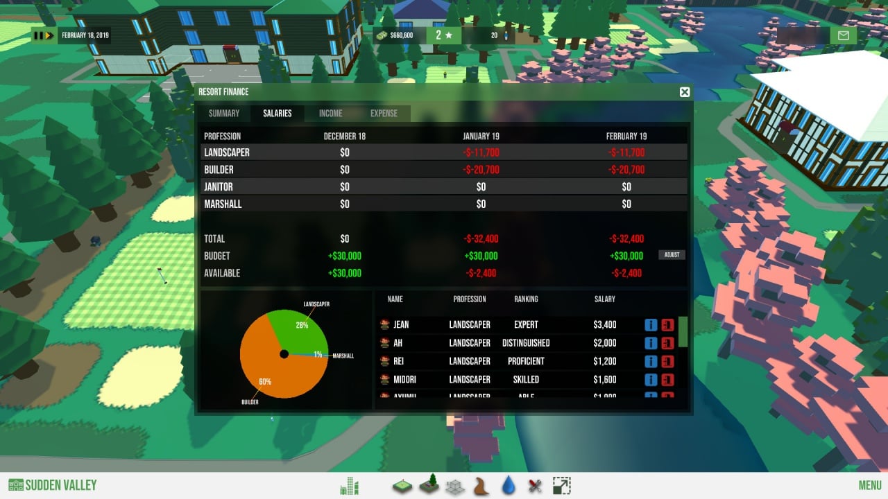 Resort Boss: Golf Полная версия Последняя Дата выхода 25 июл. 2019 Разработчик Gus Martin Жанр Стратегии, Симуляторы, Инди В основном отрицательные на основе 95 обзоров в Steam 36% Обновлено 26 января 2025, 06:12 Список изменений Resort Boss: Golf | Tycoon Management Game – это игра симулятор, где пользователю предстоит управлять загородным клубом для гольфа. Разработчики оставили полную свободу в выборе дизайна и интерьера. Также можно полностью создать персонажа, подобрать цвет кожи, одежду и статус. Характеристики удара тоже можно корректировать. Режимы Босс курорта: Гольф: Песочница позволяет создать собственную кампанию. Все строится с нуля, начиная с выбора размера участка и дома, и заканчивая цветом плитки и видами деревьями, которые будут расти рядом. Сценарий состоит из 5-ти основных частей, которые предложены разработчики. Однако игрок может выбрать свой путь или получить придуманный кем-то. Каждая глава содержит набор миссий и условий их прохождения. Их сложность будет постепенно расти, но только выполнив их все можно достичь победы. Игровая кампания выдает 100 000 долларов на развития этого бизнеса. Необходимо подготовить поле для гольфа. Действовать лучше осторожно и постепенно, деньги будут быстро заканчиваться. На каждую область выделен отдельный редактор. В нем представлен инвентарь из различных инструментов, которые можно использовать. Все элементы можно создавать самостоятельно, однако есть несколько уже построенных вариантов, которые можно использовать в неограниченном количестве. Но таких сборных объектов не много, и они не всегда будут соответствовать обстоятельствам. Также предстоит расставить лунки. Этот процесс многоэтапный, нужно учитывать сложность уровня и сопоставить риск промаха и попадания. Сделать это можно поработав с ландшафтом, изменить его структуру и конфигурацию. Скачать торрент Скриншоты Показать больше Видео из игры Скачать Resort Boss: Golf Тип релиза Лицензия (Таблетка: Присутствует) Версия (Полная) Последняя Размер 99.8 МБ Интерфейс Английский Озвучка Отсутствует Установка и запуск: Скачать .torrent торрент файл Скачать БЕЗ торрента прямая ссылка через uTorria Системные требования ОС: Windows 7, 8, 10 Процессор: Intel Core 2 Duo, 3.0GHz or AMD Athlon 64 X2 6400+, 3.2GHz Оперативная память: 2 GB Видеокарта: nVIDIA GeForce GTX 260, 512 MB or ATI Radeon HD 5670, 512 MB Место на диске: 250 МБ Градостроение, Менеджмент, Песочница, Строительство, Симулятор колонии, Казуальная, Строительство базы, Открытый мир, Экономика, Изометрия, Милая, Вид сверху, Воксельная графика, Расслабляющая, Цветастая, Для всей семьи
