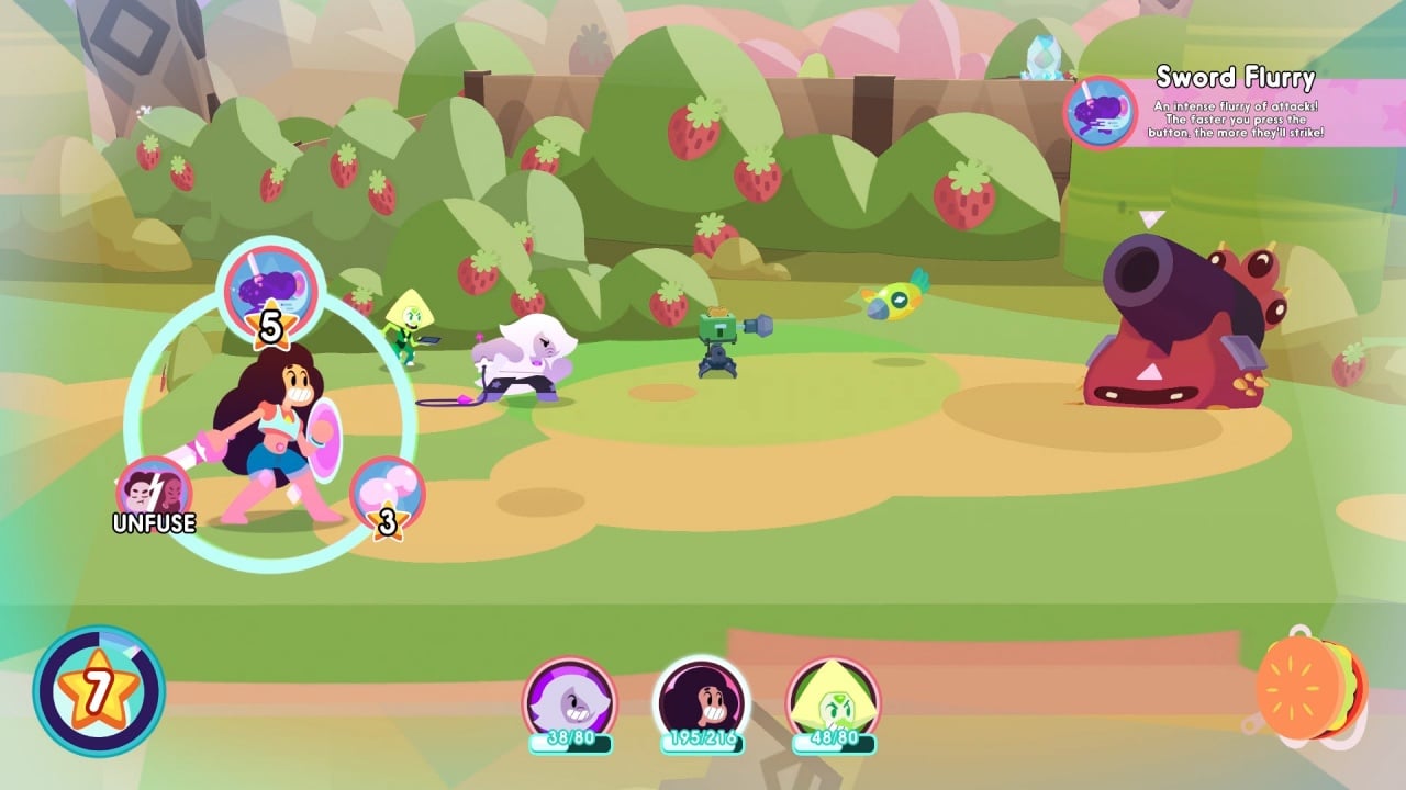Steven Universe: Save the Light RUS v 1.0 Build 180 Новая версия Полная версия Последняя Дата выхода 13 авг. 2018 Разработчик Grumpyface Studios Жанр Приключения, RPG, Экшены, Инди, Стратегии Очень положительные на основе 1241 обзоров в Steam 93% Обновлено 27 апреля 2025, 22:07 Список изменений История в Steven Universe: Save the Light походит на отдельный небольшой сезон из мультсериала. Это неудивительно, ведь к сюжету приложила руку создательница первоисточника. Начинается всё с очередной опасности пляжному городку. Загадочный самоцвет из Родного мира прибывает на Землю и похищает Призму, вокруг которой вертелась предыдущая игра. Потерять столь ценный предмет герои не могут, а потому бросаются в погоню и сражаются с прибывшей армией Света. Путешествовать в Steven Universe: Save the Light предлагают за 6 игровых персонажей: Стивен. Несменяемый член команды и главный герой истории. Гибрид самоцвета и человека, владеющий щитом своей матери. Грег. Отец Стивена, орудующий в бою электрогитарой и собственным вокалом. Конни. Девушка протагониста, сражающаяся с помощью двуручного меча. Гранат. Слияние Сапфира и Рубина, дерущаяся кулаками и способная предсказывать будущее. Аметист. Безбашенная и дурашливая, легко меняющая форму и владеющая хлыстом. Жемчуг. Всегда собранная, педантичная воительница, предпочитающая копье и способная призывать голограммы. Перидот. Самодовольная, упрямая и гиперактивная учёная, способная управлять металлами. Собрать группу из всех 6 не получиться — можно взять с собой только 4 героев. У каждого из них есть свои уникальные умения и экипировка. Последнюю разрешают улучшать, собирая ресурсы. Сами по себе персонажи также растут по уровням, что позволяет брать новые способности в деревьях прокачки. Кроме того, герои могут выполнять совместные атаки, сливаться или усиливать друг друга. По части геймплея игра похожа на смесь квеста и JRPG. Команда бродит по локациям, решая головоломки с помощью умений и выполняя задания. При столкновении с противником действие переносится на экран сражения. Там в пошаговом режиме происходит битва, в ходе которой можно атаковать, защищаться, использовать предметы и способности. Скачать торрент Скриншоты Показать больше Видео из игры Скачать Steven Universe: Save the Light Тип релиза Лицензия (Таблетка: Присутствует) Версия v 1.0 Build 180 (Полная) Последняя Размер 1.40 ГБ Интерфейс Русский Озвучка Английская Установка: Скачать .torrent торрент файл Скачать БЕЗ торрента прямая ссылка через uTorria Альтернативные раздачи Прямые ссылки Облачные хранилища v 1.0 Build 180 670 МБ Показать Системные требования ОС: Windows 7 / 8 / 10 (64-bit) Процессор: Intel i5-2300 Оперативная память: 8 GB Видеокарта: Nvidia GTX 730 Место на диске: 9 ГБ Мультфильмы, Милая, Пошаговые сражения, Отличный саундтрек, Пошаговая, Для всей семьи, Игры в 2D, Цветастая, Фэнтези, Открытый мир, Глубокий сюжет, Игры с геймпадом