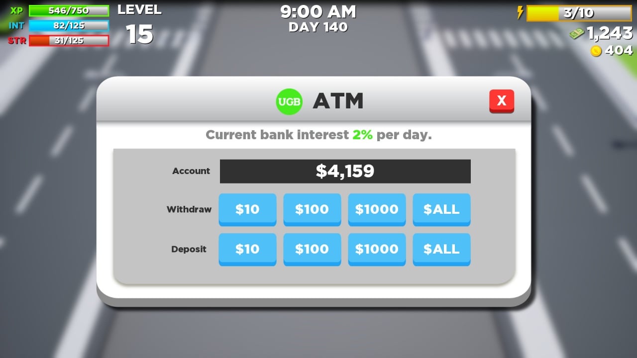 Super Life (RPG) – казуальный симулятор прогресса. Геймеру предстоит выбрать своего персонажа из предложенных вариантов (имеется и женский, и мужской пол), и развивать его различные показатели, будь то интеллект или силу тела. Инди-разработчики позаботились о том, чтобы разнообразить прохождение, поэтому добавили выбор перка: "удачливый", больший шанс на случайное событие, "богатый", 5 тысяч долларов в кармане, "ботаник", +2 к интеллекту при занятии в школе, и "качок", +2 к мощности при посещении спортзала. Эти пассивные бонусы помогают удачно стартовать и планомерно развиваться в выбранном направлении. Главный герой проживает в миловидном городке под названием "Sun Villa". Он интересен тем, что здесь проживают открытые личности, желающие заводить знакомства и помогать.
