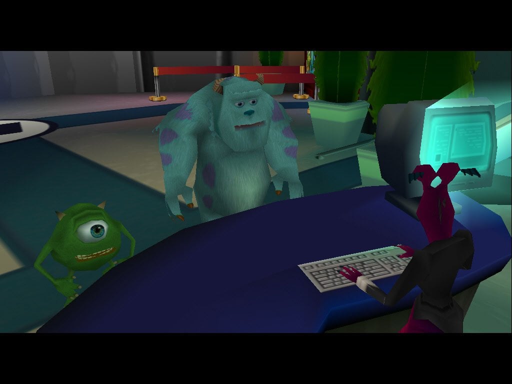 В Monsters, Inc. Scare Island можно играть за 2 персонажей – Джеймса Салливана и Майка Вазовски. По сюжету они проходят своего рода собеседование и тестирование. Историю можно считать неофициальным приквелом к самому первому мультику. Эти существа должны пройти серию испытаний, чтобы работодатели могли понять, подходят ли они для вакансии. Как известно, в оригинале их работа состояла в том, чтобы пугать детей, добывая из их криков энергию для своего города. В игре малышей нет. Вместо них присутствуют тренировочные роботизированные манекены, что делятся на несколько типов в зависимости от степени своей устойчивости к страху.