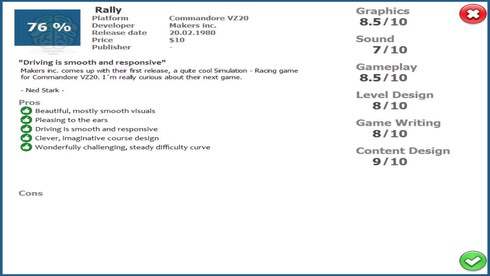 В GamersGoMakers 3 уровня сложности. Можно создавать проекты в 31 жанре. Начать бизнес позволяют в 1980, 1990 и 2000 годах. Выбранный стартовый период влияет на возможности компании. К примеру, в восьмидесятых не получится создать "графонистый" шутер по причине отсутствия нужных технологий. Однако со временем тут появляются новые фишки, вроде регулирования уровня насилия в конкретном проекте. Здесь позволяют создать собственного персонажа, настроить его внешность и определить ему специальность: разраб, дизайнер, композитор или продюсер.