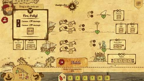 Это шуточная пошаговая стратегия. Она пародирует рассказы о морских приключениях. Все события в Here Be Dragons разворачиваются на ожившей карте мира, стилизованной под древние документы. Очень многое в этом проекте решается бросками кубиков, вплоть до лечения команды и улучшения флота. Поэтому влияние рандома на геймплей здесь сильное.