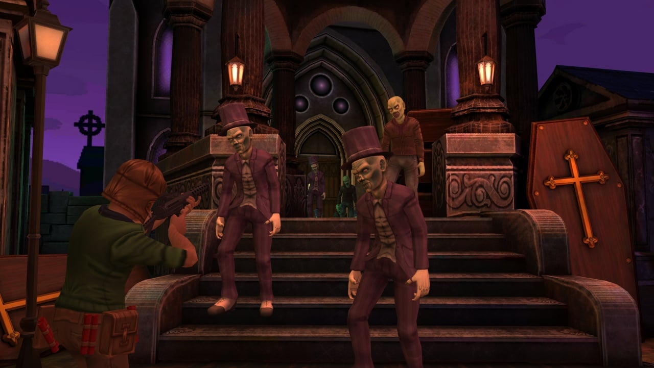 Арсенал оружия представлен пушками 60-х годов. Все протагонисты предпочитают особое оружие, используя при этом вспомогательные стволы. Вам необходимо преодолевать различные препятствия и ловушки, оставленные злодеем Вонгом. Также предстоит разобраться с армией зомби, которые появились в результате разработки смертельного вируса. Заставьте безумного доктора ответить за свои действия и верните в Англию мир и порядок!