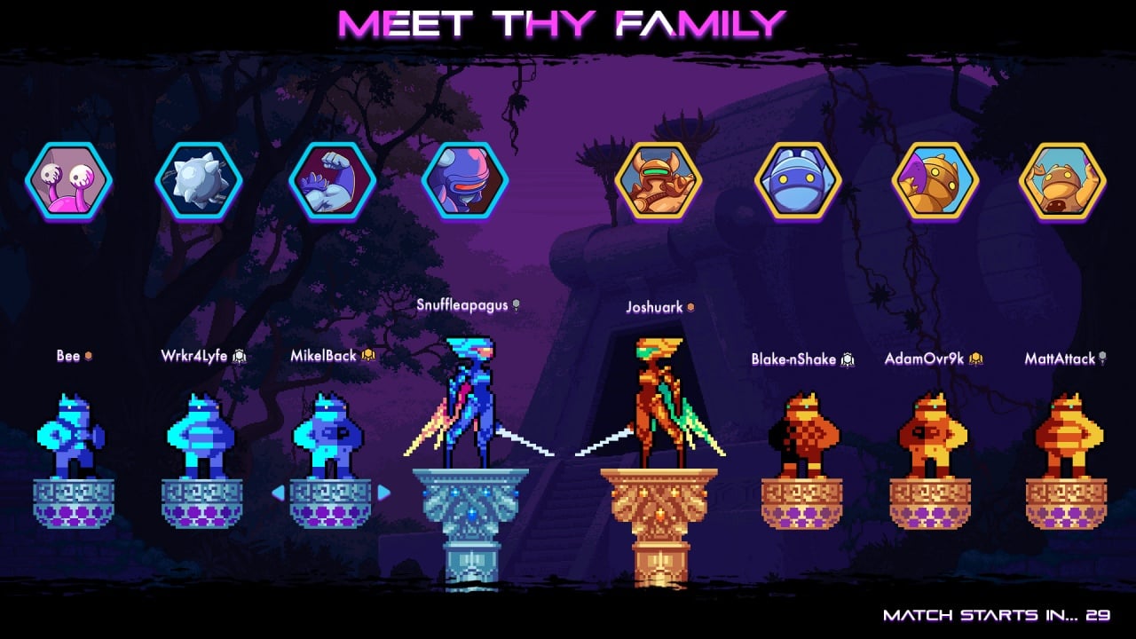 Killer Queen Black - динамичный платформер с элементами стратегии, позволяющий играть как в одиночку, так и соревноваться по сети с 8 игроками одновременно. Сразитесь в быстрых матчах, где важно то, какую тактику вы используете и как быстро реагируете на атаки противника. Поддерживается кроссплатформа. Игровой процесс Killer Queen Black позволяет сражаться тремя разными способами: прыгайте на улитку, собирайте ягоды или уничтожайте королеву. Вы можете взять под свой контроль трех рабочих или саму воительницу. Битва происходит между двумя командами по 4 человека, где основная цель - защищать свой улей от нападения со стороны врага. Если вы играете за королеву, то необходимо защищать не только базу, но и своих рабочих.