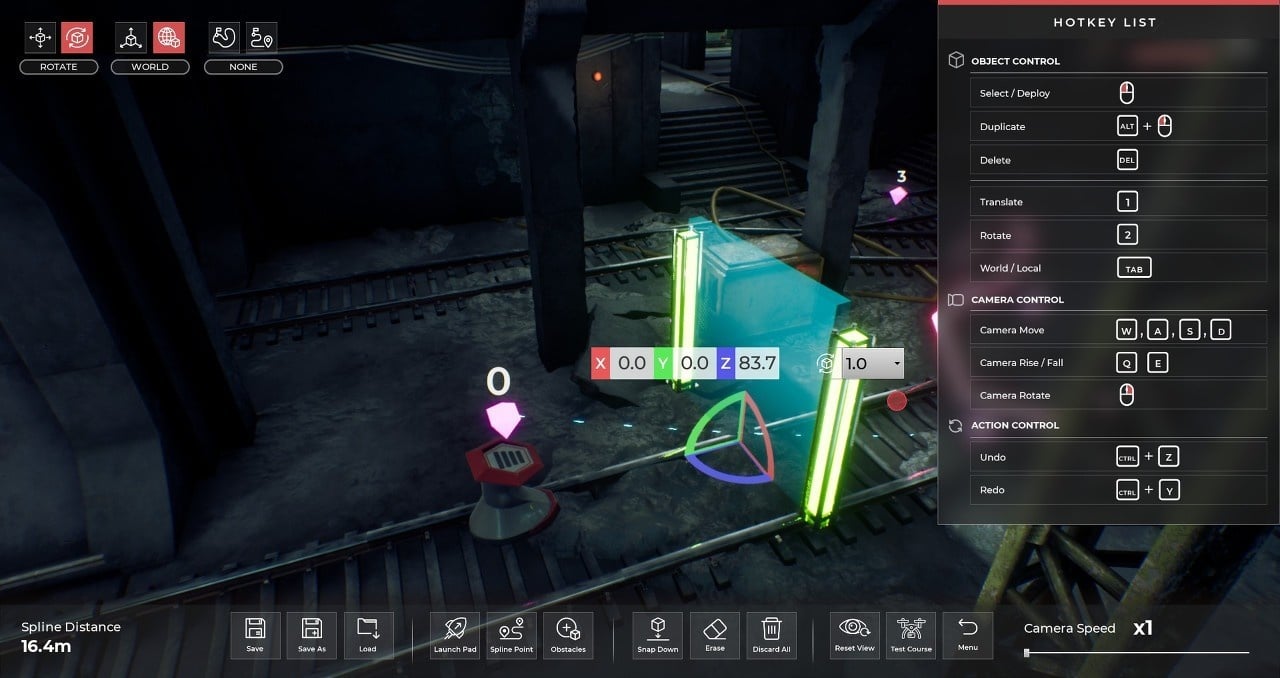 Игровой процесс представляет собой казуальные гонки, где на освоение управления уходят считанные минуты. Участвуя в соревнованиях, начисляются очки опыта, которые можно потратить на Верстаке - магазине деталей. Кастомизируйте свой дрон по своему вкусу и предпочтениям. Меняйте детали и настраивайте внешний вид. Drone Tracks предлагает воспользоваться внутриигровым редактором, чтобы создать свои собственные карты, которые можно загрузить в сеть. Соревнования пройдут на шести уникальных картах: Завод, Склад, Метро, Остров, Ледяное озеро, Руины и Зеленый лес. В гонках принимает участие до четырех человек. Доступно несколько режимов, в которых необходимо победить в кольцевых гонках, поучаствовать в заездах на вылет и многое другое.