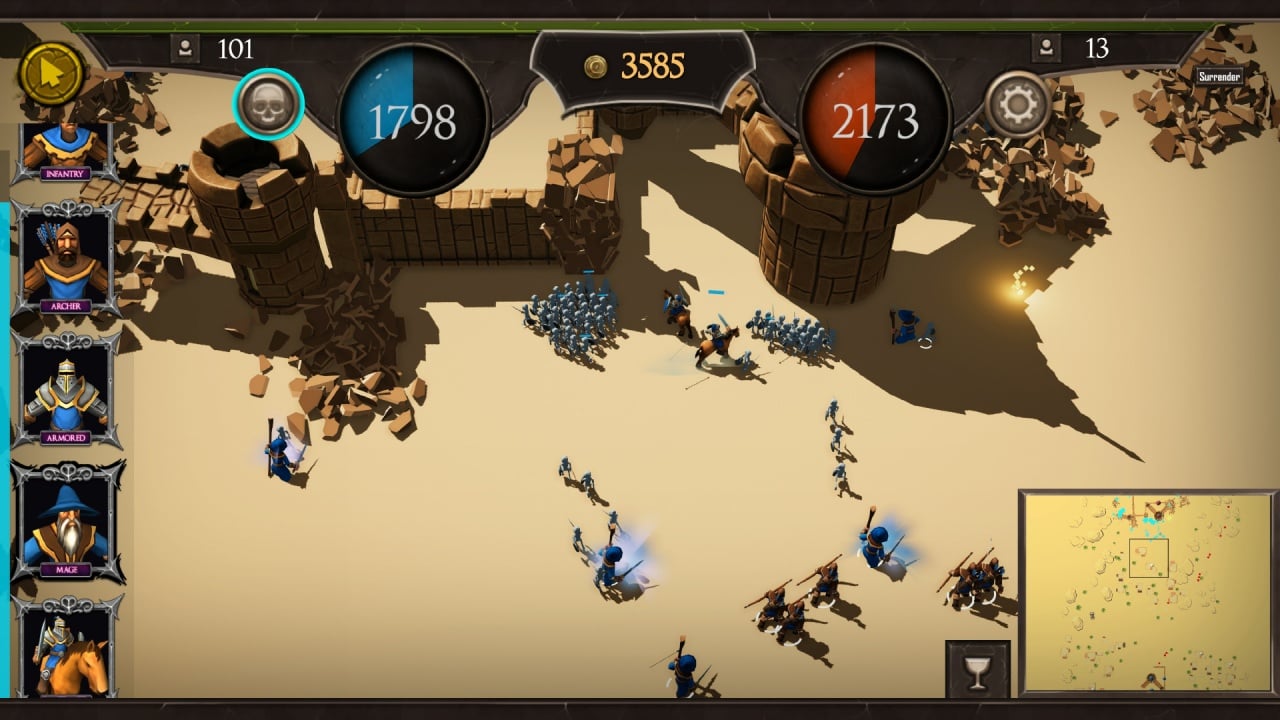 Каждый юнит имеет уникальные характеристики и параметры. Изучайте сильные и слабые стороны как своих бойцов, так и противника. Побеждая врагов, зарабатывайте очки опыта, чтобы разблокировать новые способности или улучшить защиту. Также по мере прохождения кампании открываются новые виды юнитов, среди которых кавалерия, маги, гиганты и многие другие.