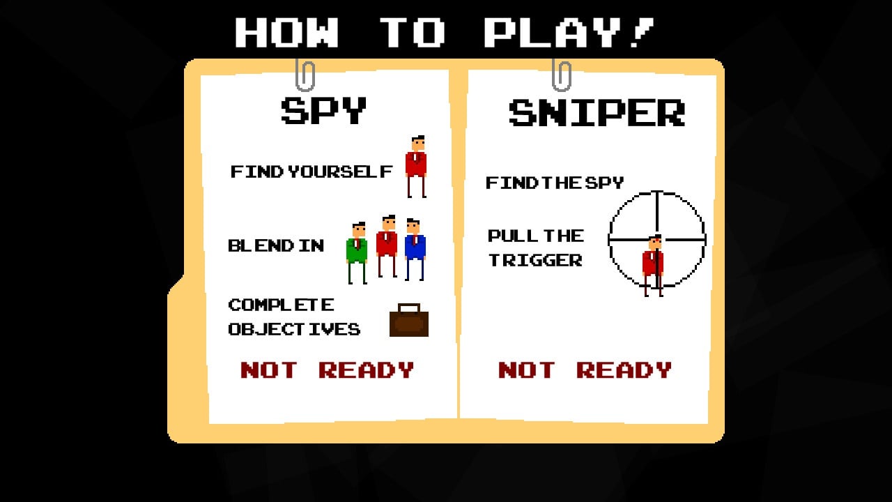 Как только Снайпер поймет, кто из толпы является Убийцей, он может выстрелить во врага. В случае неудачи победа отводится шпиону. Действия разворачиваются на разнообразных картах: Городская площадь, Станция метро, Танцевальный клуб, Коктейльная вечеринка, Тусовка на крыше возле бассейна и т.д.