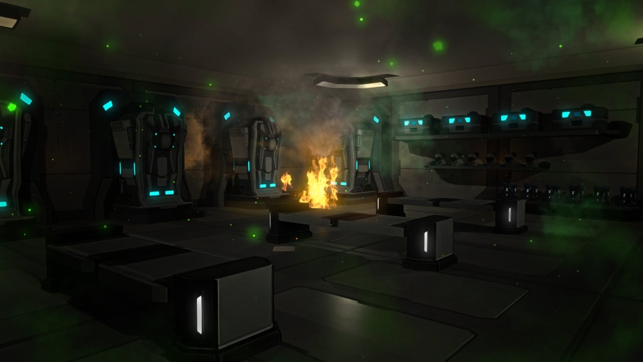 Изучайте помещения, взаимодействуйте с окружающей средой и терминалами, пробивая себе путь в безопасные места. С каждой минутой игровой процесс усложняется и помещения все больше охватывает пламя. Единственный ваш союзник - искусственный интеллект, дающий подсказки. Исследуйте огромный космический корабль, собирая полезные ресурсы. Действует система голода и жажды. Старайтесь избегать депрессии и поддерживайте моральный дух.