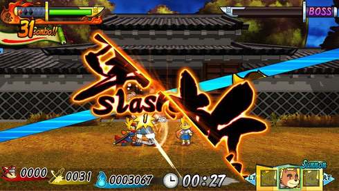 Shinobi Spirits S Legend of Heroes - двухмерный экшен, предоставляющий весь арсенал смертоносного ниндзя для борьбы с разнообразными врагами. Используя все возможности настоящего шиноби, создавайте цепочки и комбинации атак, чтобы эффективно побеждать противников в бою. При помощи специальных устройств Smoke Bomb и Nose Dive не дайте врагам и шанса на спасение!
