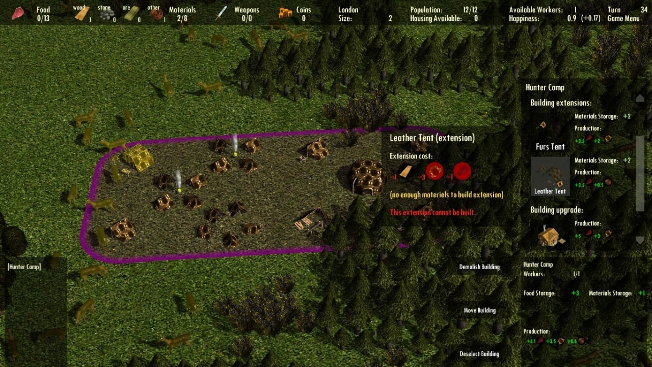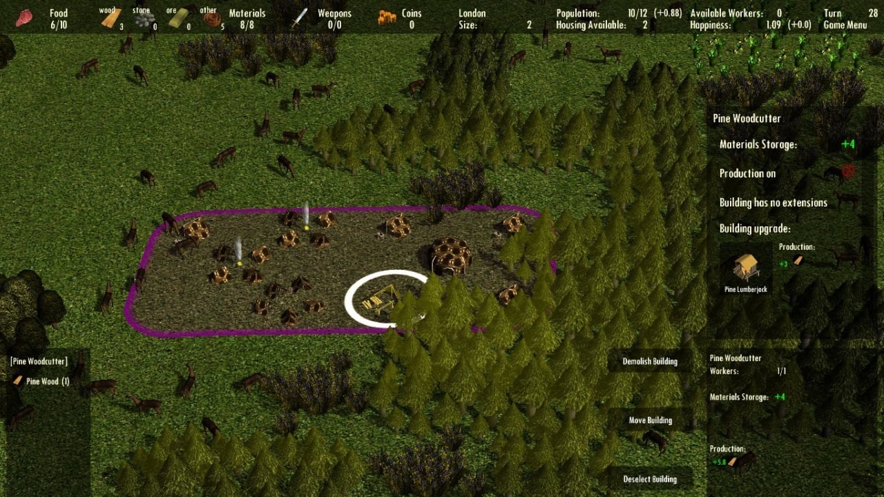 Карты делятся на два типа: маленькие и большие. Маленькие составляют площадь 100х100, а большие 500х500 плиток. Игровой процесс Clans to Kingdom строится на развитии поселения. Добывайте ресурсы, нанимайте крестьян для выполнения различной работы и т.д. Выстраивая новые виды зданий, изучайте технологии, позволяющие вам переходить на следующий этап развития. Рубите деревья, занимайтесь охотой, добывайте камень, золото и т.д.
