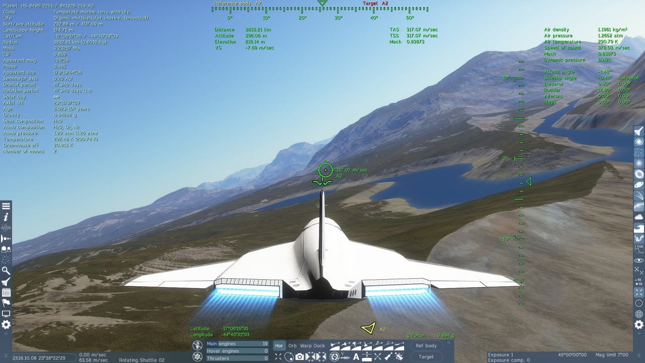 Каждая планета процедурно генерируется, предоставляя рандомный рельеф с детализированными текстурами. Все объекты, которые вы видите на небе, будь-то звёзды, планеты, луна, астероиды, кометы, черные дыры, скопления и туманности - все доступно в игре. Геймплей создавался на основе данных, полученных с NGC/IC, Messier, HIPPARCOS, GAIA, Gliese, Kepler, MPC и других источников. Поддерживаются устройства виртуальной реальности, такие как HTC Vive, Valve Index и WMR, позволяющие еще больше погрузиться в игровой процесс.