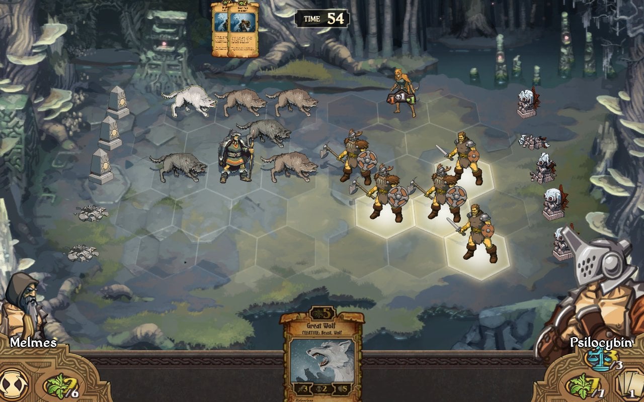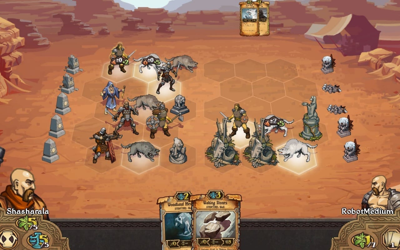 Каждый юнит имеет три характеристики: атака, обратный отсчет и здоровье. Атака определяет количество нанесенного урона. Отсчет измеряет ходы отряда перед атакой, а очки здоровья показывают жизненные силы персонажа. Персонажи начинают бой с 10 очками здоровья. Сражения представлены в пошаговом режиме. У вас есть 90 секунд для совершения действия в сетевом режиме и неограниченное время в одиночной кампании.