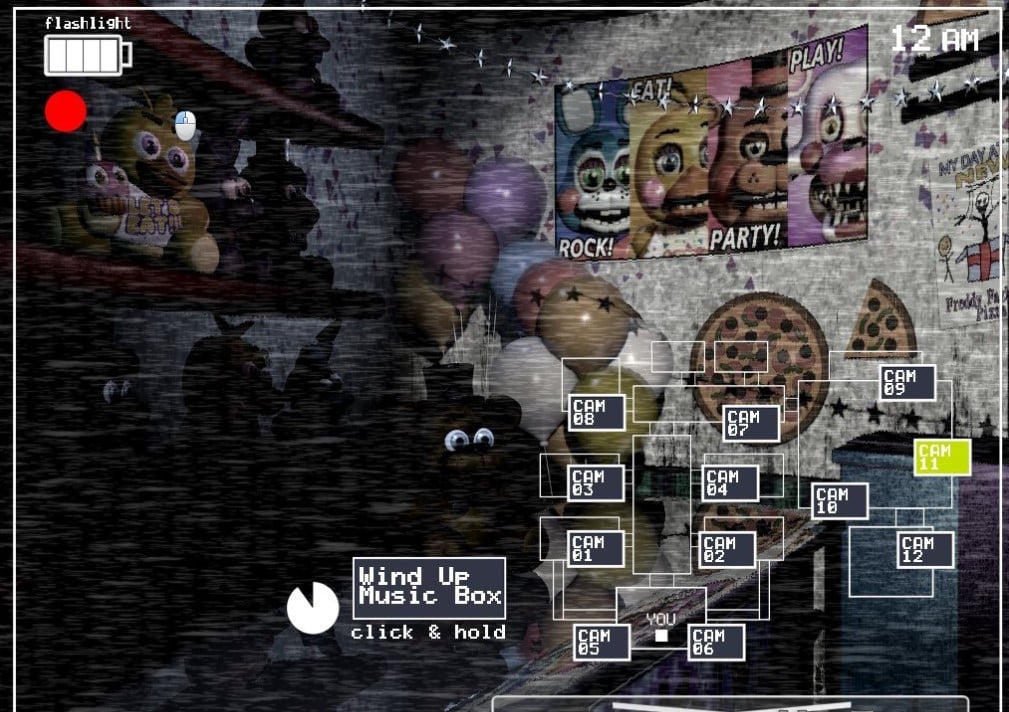 Охранник следит за камерами, расставленными по всему периметру. В любой момент можно надеть голову Фазбира и таким образом обмануть аниматроников, если они вломятся в офис. Мультиплеер позволяет быстро подключаться к игре. В лобби просто введите имя друга или присоединяйтесь к уже созданной игре. Комнату можно сделать как общедоступной, так и закрытой, играя только с приглашенными участниками. Войдя в стены пиццерии, помните, что Fazbear Entertainment не несет ответственности за вашу смерть или расчленение.