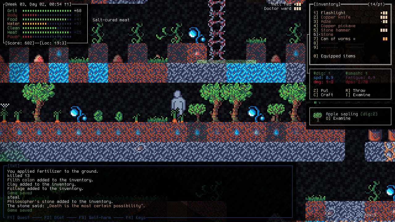 Пользователю предстоит обживаться на территории практически бесконечного подземного мира, обустраивая своё убежище, в котором можно хранить личные вещи, ресурсы, восстанавливать здоровье путём отдыха и разводить животных ради бесперебойного источника пищи. В игре реализована прокачка различных навыков, открывающих рецепты для крафта, новые виды оружия и пассивных бонусов, усиляющих протагониста. Разработчики добавили специальный искусственный интеллект, что отвечает за появление на карте случайных событий, вносящих разнообразие в исследование подземного мира, богатого на всевозможную флору и фауну. Попытки сбежать от некоторых сильных видов существ может обернуться тем, что игрок потеряет собственное убежище, поэтому необходимо быть внимательным и запоминать путь домой.