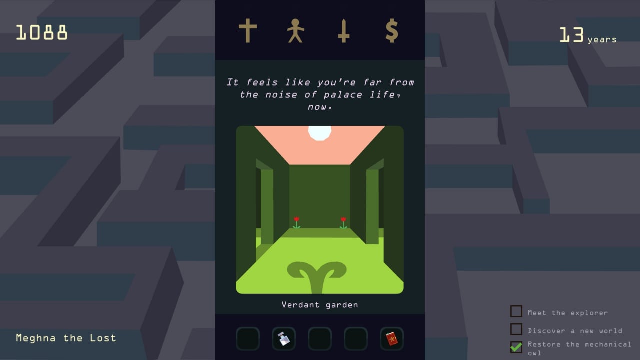 Необходимо принимать важные решения, которые будут влиять на дальнейшую судьбу королевства. Все вопросы и указы приходят на мобильный телефон. Правительница ознакамливается с реформами и с помощью взмаха пальца по экрану принимает их или отвергает. В ее распоряжении есть также инвентарь, в котором хранится множество магических вещей, способствующих влиять на судьбу государства и более лучше разбираться во всех политических интригах.