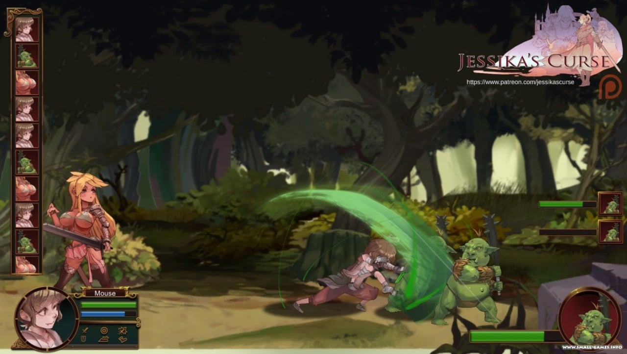 Особенностью “Проклятие Джессики” является система получения урона, что заменена в этой игре на повышение похоти девушек, что входят в состав группы пользователя. При заполнении соответствующей шкалы, воительницы начинают игнорировать команды геймера и отдаются сексуальному возбуждению, постепенно раздеваясь. Когда девочка доходит до пика, противник применяет специальный скилл, что вырубает красотку в максимально сексуальной манере. Такие же виды атак применяют и виртуальные протеже, что пытаются возбудить оппоненток и воспользоваться их состоянием.