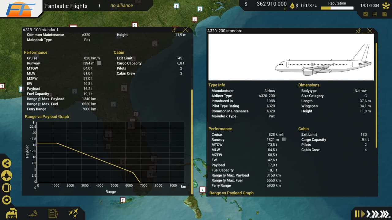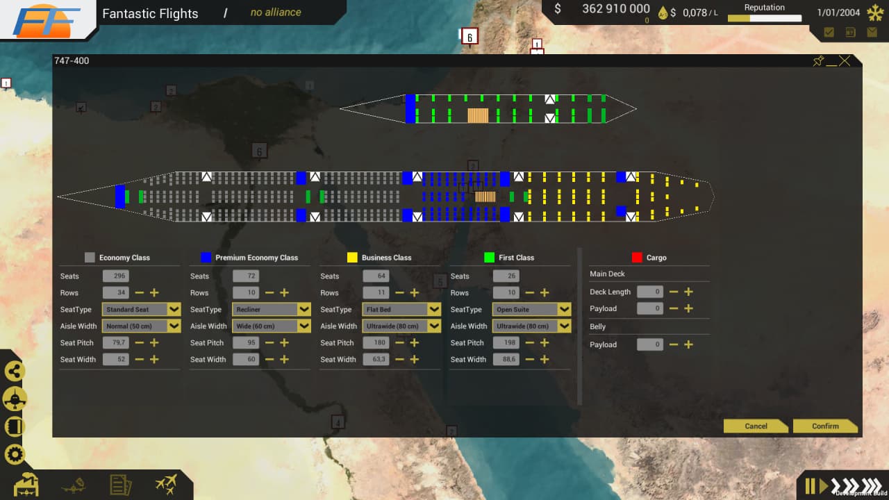 Юзер начинает свой бизнес с покупки или аренды самолета. В The Airline Project - Next Gen можно кастомизировать пассажирские лайнеры, настраивая конфигурацию салона, выбирая двигатели для них и всё в таком духе. После этого важно договориться с аэропортами, приобретая в них слоты для своего транспорта. Для создания маршрутов доступно 4000 воздушных гаваней со всего мира. Можно планировать полеты с точностью до минуты.
