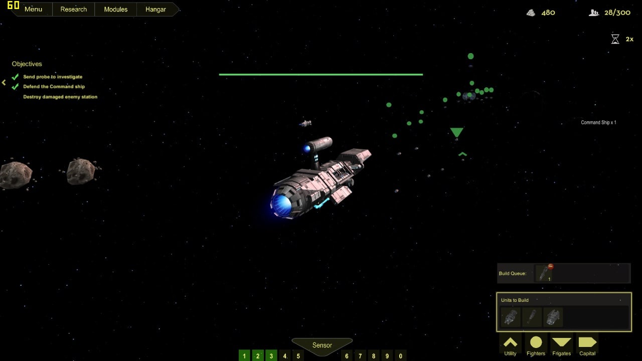 История разделена на миссии. Как и в игре-вдохновителе, пользователь начинает с материнским кораблем и постепенно обзаводится флотом. Все уцелевшие в схватках единицы переходят с юзером в следующие задания. Командирское судно выступает одновременно в роли базы и боевой техники. Оно может строить летательные аппараты, отправлять сборщиков на астероиды для добычи минералов, улучшать собственное вооружение и при необходимости отстреливаться. Для управления звездолетами необходим персонал. Можно спасать экипаж из подбитых врагами судов, чтобы потом не испытывать нехватку пилотов.