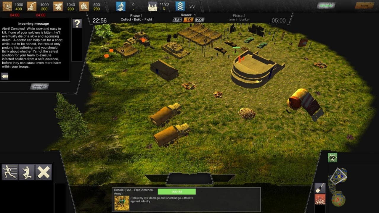 Пользователь играет на стороне людей. Как и в других стратегиях, тут надо собирать ресурсы и отстраивать базу. Однако здесь юзер строит свой лагерь не на поверхности, а под землей. Для строительства новых помещений сначала потребуется вырыть и освободить подходящее место. Доступно 12 типов зданий. Периодически геймер отправляет на разрушенную поверхность солдат (всего тут 11 юнитов), чтобы там уничтожать вражеских существ и собирать полезные материалы. Свои постройки и бойцов можно улучшать с помощью трех технологических уровней. Военная техника представлена танками, джипами, вертолетами.