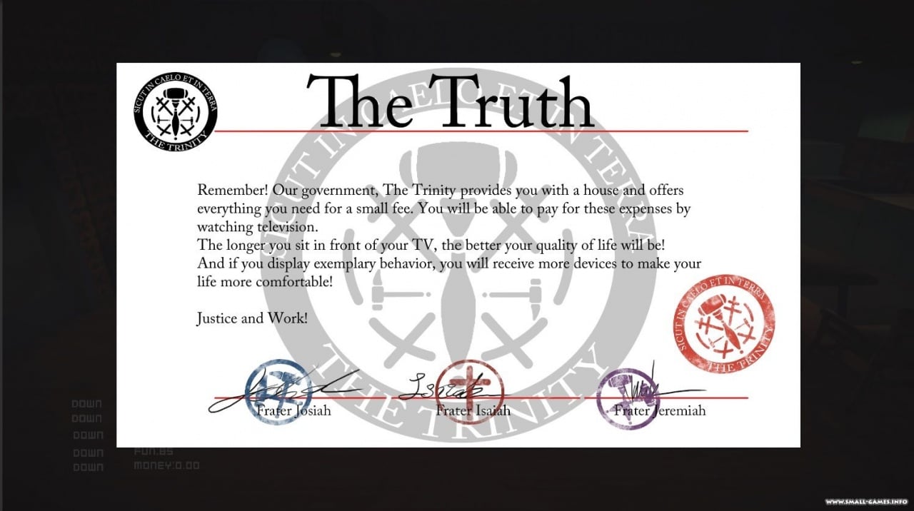 Сюжет подается исключительно через текстовые материалы, представленные в игре. В зависимости от ваших действий, заготовлено 8 различных финалов. Внимательно исследуйте каждую деталь, которую можете обнаружить у себя в квартире. Именно на взаимодействии с ними выстраивается основная цепочка повествования, приводящая к определенному финалу истории. Какой будет ваш? Это и предстоит выяснить.