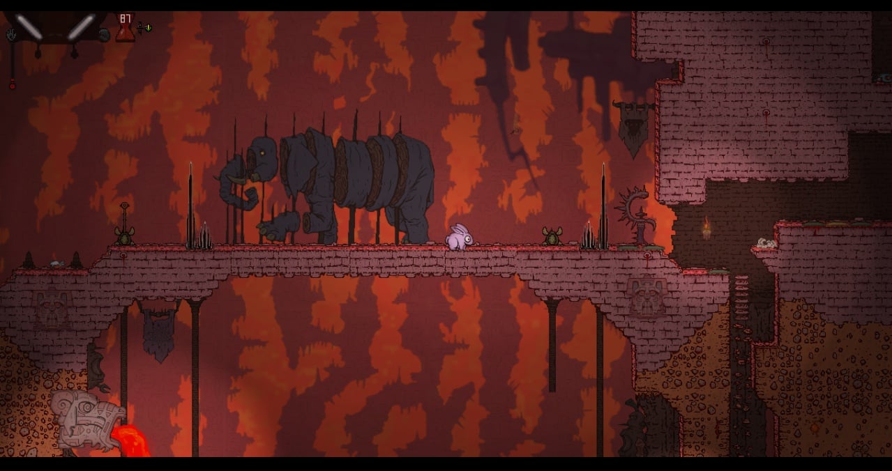 Прячьтесь от врагов, поскольку это может быть единственный шанс на спасение. Игра отличается жестокостью и обилием крови. Присутствуют батальные сцены пожирания главного героя монстрами. Яма, в которой происходят действия, по-настоящему огромная. Вам предстоит пробираться сквозь ядро магмы, вакуум космоса и многие другие необычные локации.