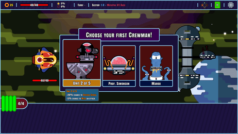 Rescue Squad Omega - космический рогалик с элементами карточной игры. Галактика под угрозой и вы играете за единственного героя, способного противостоять внешней угрозе и дать отпор инопланетным захватчикам. Вам поручают спасательную миссию и вы сиюминутно отправляетесь в опаснейшее приключение, с которого можете и не вернуться…