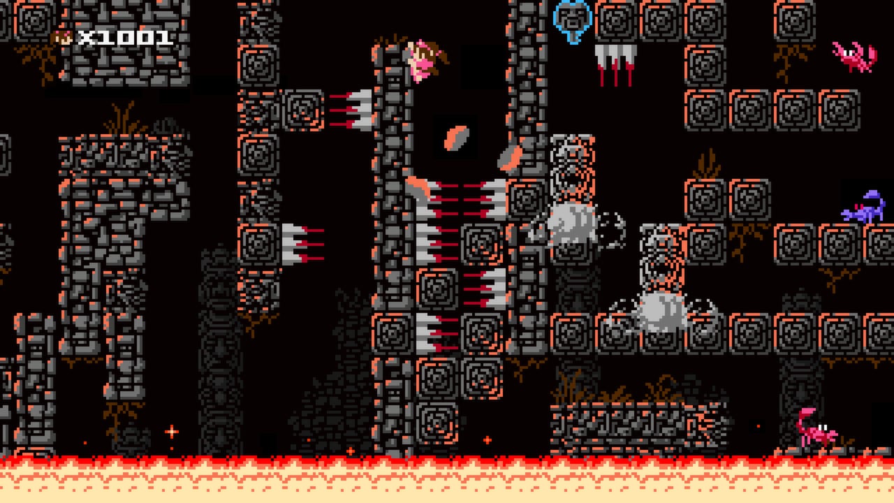 1001 Spikes – это хардкорный платформер, требующий от геймеров высокой точности и большого запаса терпения. Графика и музыка в нем стилизованы под игры с восьмибитных приставок. Инди-проект состоит из 100 уровней. В них встречаются враги, но главную опасность представляют не они, а различные шипы, летящие кинжалы и дротики, падающие булыжники и прочие виды ловушек. Они убивают с одного касания.