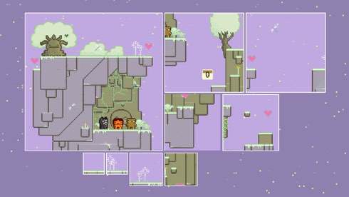 Локации в этой игре раздроблены. Каждый этап разрезан на квадраты, которые перемешиваются. При этом базовая структура уровня остается прежней. Но геймеру демонстрируется только искаженный вариант. Например: есть тропинка, шипы и дуб. Юзер видит 3 экрана с этими объектами уже в следующем порядке: дорога, дерево, шипастая поверхность. И если он во время перемещения не подпрыгнет в середине пути, то попадет в ловушку, так как на самом деле в среднем квадрате находится не растение, а те самые острые предметы. В Where is my Heart? есть 3 персонажа: