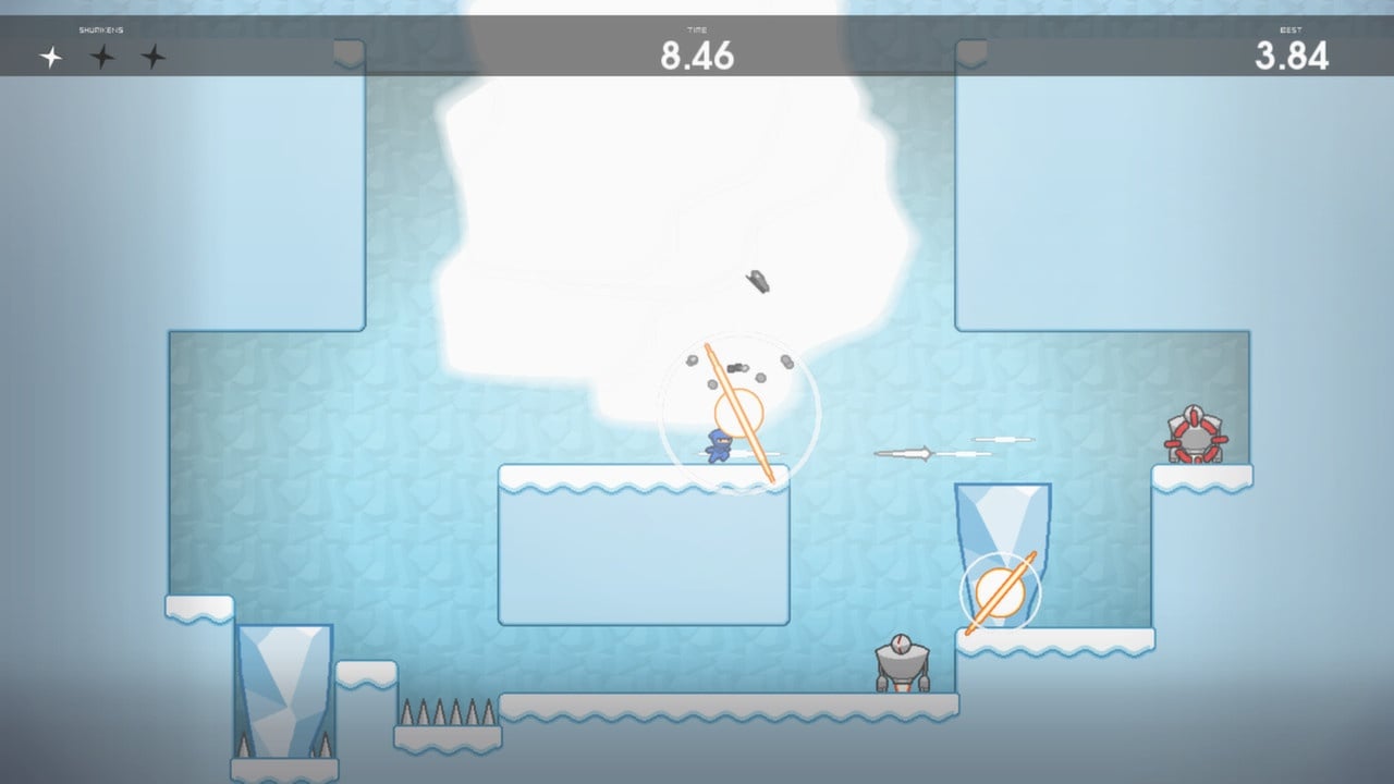 Это одна из тех игр, что подгоняют пользователя вперед и требуют от него точности и скорости. Персонаж умеет бегать, прыгать, размахивать катаной и метать сюрикены (их на каждый уровень дают всего 3 штуки). Как только геймер совершает любое действие, таймер сразу же включается и начинает вести обратный отсчет. За прохождение этапа можно заработать максимум три звезды. Они нужны для получения доступа к новым зонам. Сложность растет постепенно. По мере прохождения появляются силовые поля, которые надо отключать, разные ловушки и неуязвимые перед ударом меча враги (их можно убить только дефицитным сюрикеном). Есть возможность открыть дополнительный и весьма хардкорный режим "Марафон", где предлагают пройти все локации в каждом мире за один присест без перезапуска и права на ошибку.