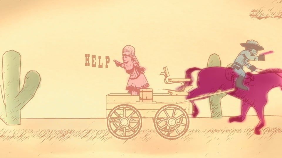 Gunman Clive использует антураж вестернов и смешивает его с научной фантастикой. Помимо ковбоев с револьверами и бандитов в широкополых шляпах тут встречаются лазеры и роботы. А перестрелки проходят не только на фоне салунов, но и в космосе. Инди-проект в первую очередь выделяется своей графикой. Она похожа на оживший детский рисунок, сделанный на бумаге. В основном все вокруг монохромное и выполненное в оранжевой палитре. Лишь враги и лошади раскрашены в другие цвета.
