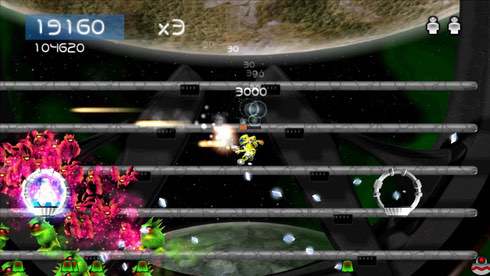 Игра является экшен-платформером с видом сбоку и предлагает геймплей старой школы. Герой бегает по многоэтажным аренам с препятствиями и уничтожает появляющихся со всех сторон монстров. Он может подниматься на этаж выше с помощью джетпака, а также спускаться вниз. Персонаж вооружен достаточно скорострельным бластером. Можно подбирать временные усиления, что позволят недолго стрелять сразу тремя пулями в разные стороны, наносить больше урона, выпускать самонаводящиеся ракеты, выжигать всё лазером. Этап считается пройденным после зачистки поля боя от всех чудищ. За убийство пришельцев-зомби дают очки. Выпадающие из них кристаллы увеличивают множитель.