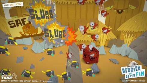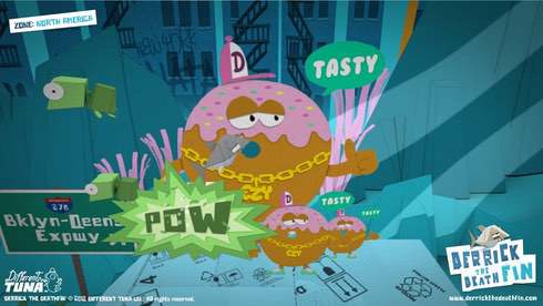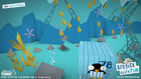 Derrick the Deathfin – это шуточный раннер с видом сбоку. Игра переносит геймеров в подводный мир, сделанный из бумаги и картона. По сюжету у акулы по имени Деррик родители гибнут и становятся рыбьими консервами. Морской хищник пытается отомстить за их смерть, уничтожая всё на своем пути и параллельно борясь против загрязнения окружающей среды людьми.