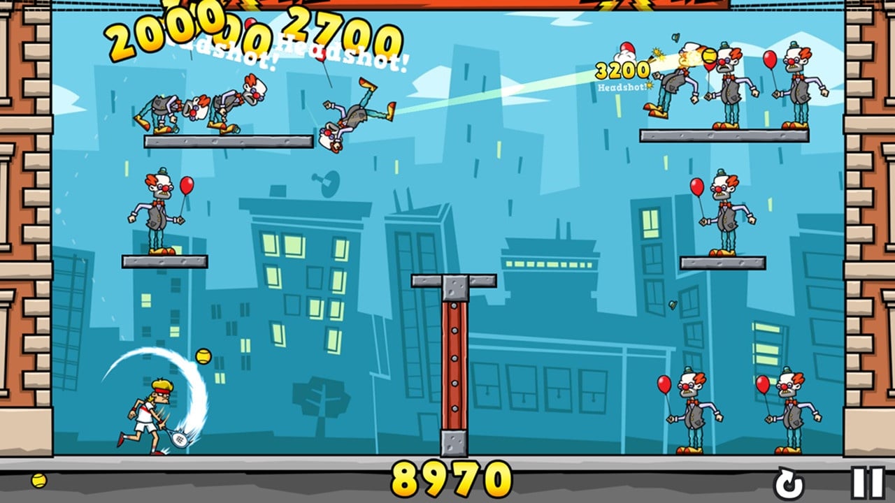 Игровой процесс выглядит следующим образом. У героя есть 3 мяча для тенниса. С их помощью нужно поразить все цели на экране. Мяч может отскакивать от поверхностей и самих жертв, поражая сразу несколько людей. Желательно сбить одним снарядом всех сразу или зацепить как можно больше недругов. Бывший теннисист пытается попасть по лицам клоунов, полицейских, ученых, хипстеров, рабочих в защитных костюмах. Нанесение финального добивающего удара показывается в режиме замедления времени. На этапах попадаются взрывоопасные бочки, пивные банки, доски и другие предметы, помогающие нанести массовый урон и спровоцировать цепные реакции. В игре частично разрушаемое окружение.